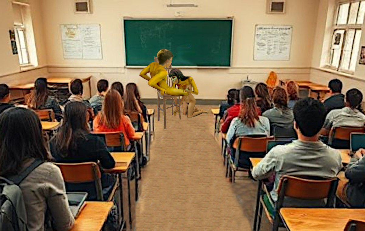 “The teacher told him that his hard-on showed that he needed relief so the teacher looked around the classroom to see who to pick. There were a lot of hands—man, I was surprised at that! I didn’t think that many girls would want to do that publicly, but then I thought, well, it’s safe—they won’t get forced to go any further, it’s approved by the school—yeah, right?—and a good way for the girl to get some no-strings-attached practice. Isn’t that a win-win-win? Whatever. Anyway, the kid whispered to the teacher to please pick his girlfriend; he agreed to do it and picked her.