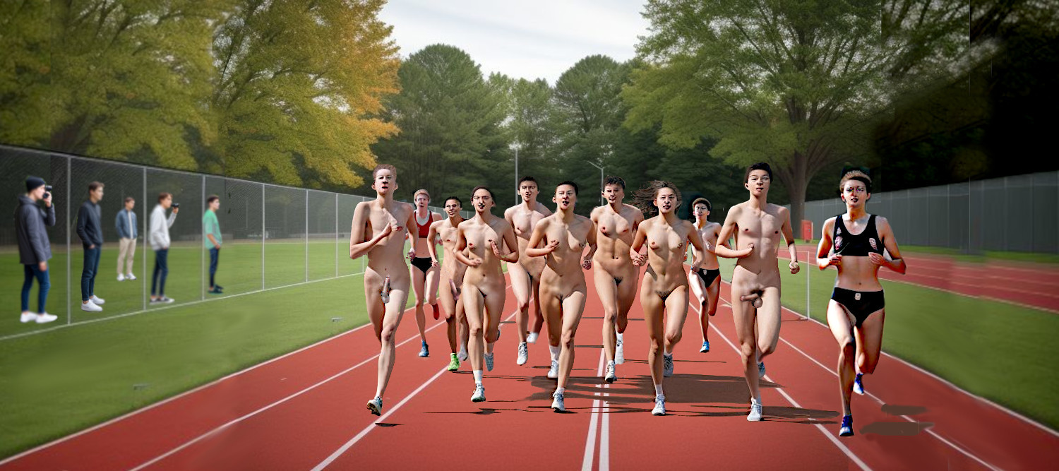 Three hours later, they had reached Pittsfield and decided to stop for lunch. As they slowly rode through the town, they passed a high school and could see kids running on the track next to the football field; and a bunch of them were naked. And there were a number of adults standing near the fence, watching them and taking photos.
